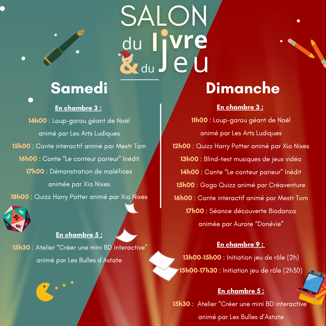 Parmi les activités qui vous seront proposées, vous retrouverez un bar à jeux, des auteurs en dédicaces, une salle d’arcade (flippers, jeux rétro…), des quizz, des contes pour petits et grands, des ateliers autour du livre…